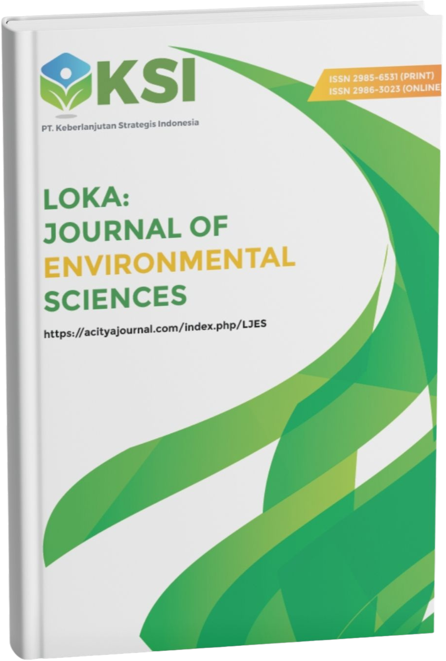 Loka: Journal Of Environmental Sciences (abbreviated as LJES), published by PT Keberlanjutan Strategis Indonesia p-ISSN 2985-6531 e-ISSN 2986-3023 The Loka: Journal Of Environmental Sciences is has published four (4) issues per year and published in January – March, April – June, July – September, October – December.. Loka: Journal Of Environmental Sciences also uses the LOCKSS system to ensure a secure and permanent archive for the journal. Since 2024, Loka: Journal Of Environmental Sciences member of CrossRef, therefore each article will own a DOI (Digital Object Identifier) number 10.38142/ljes, Web of Science and see Abstract and Indexing